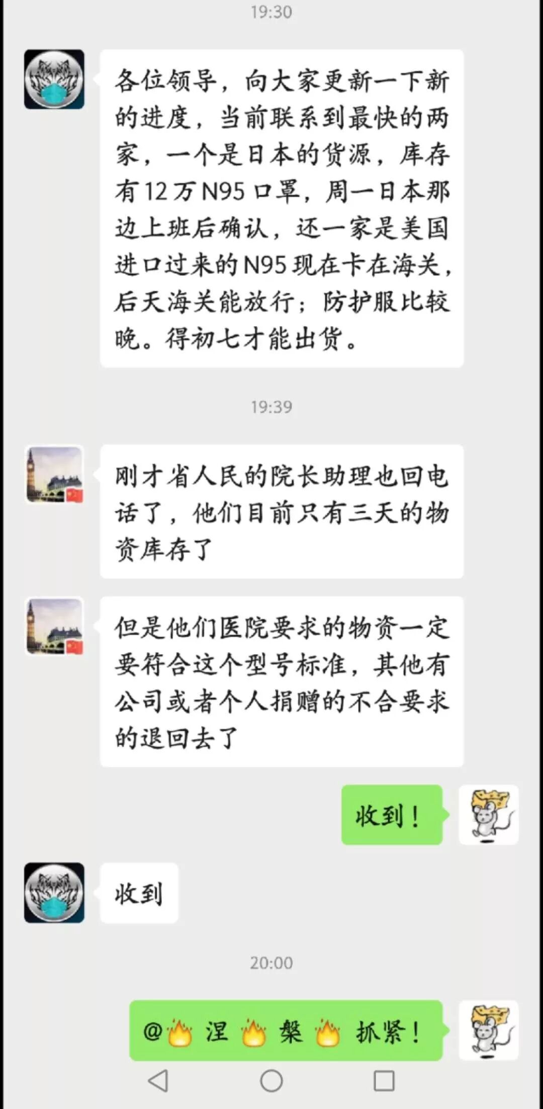 看到這些醫(yī)護(hù)工作者的現(xiàn)狀及求助信息,北陸藥業(yè)董事長(zhǎng)兼總經(jīng)理王旭(WANG XU)先生當(dāng)即成立了武漢應(yīng)急小組,發(fā)動(dòng)公司各方資源,準(zhǔn)備采購(gòu)價(jià)值100萬(wàn)元的醫(yī)療物資,為武漢醫(yī)院馳援。
