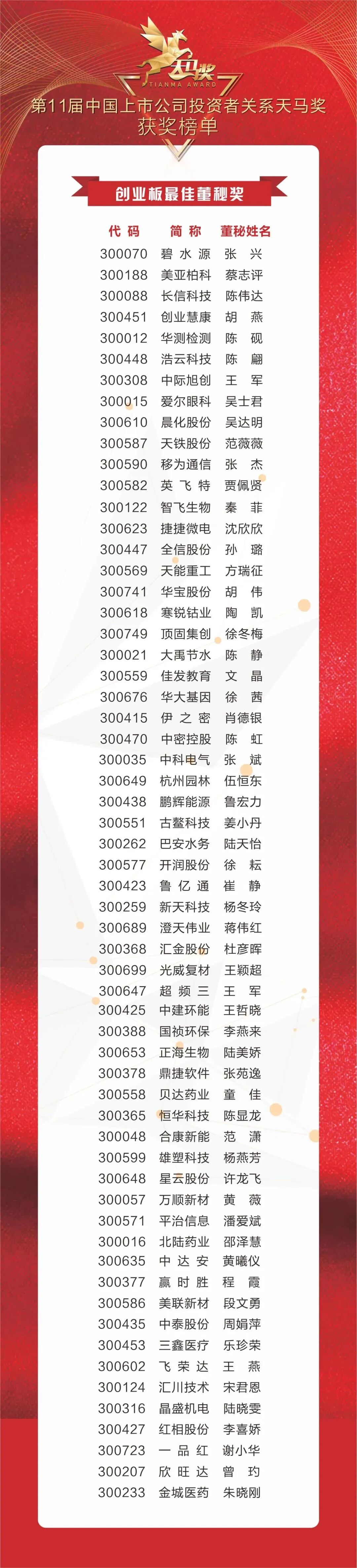 本屆天馬獎經過合規(guī)和資格篩查、公司申報、機構推薦、網絡投票、評委評審與交易所審核等六大環(huán)節(jié)層層遴選,各獎項最后脫穎而出。公司董秘邵澤慧女士在今天出版的《證券時報》“第11屆中國上市公司投資者關系天馬獎特刊”中發(fā)表寄語: