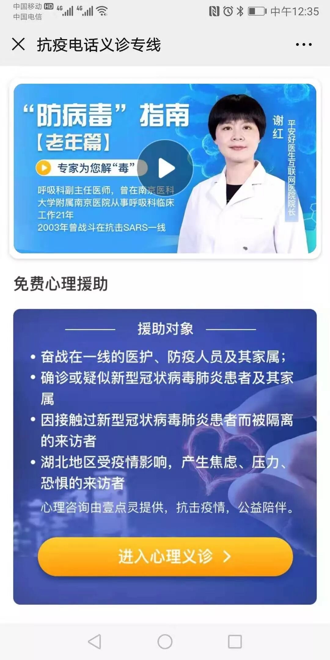 為助力抗擊疫情,北陸藥業(yè)聯(lián)合平安好醫(yī)生共同推出了24小時免費義診服務(wù),通過抗疫在線問診和心理義診專線的方式,24小時為公眾提供健康防護指導(dǎo)。![]()